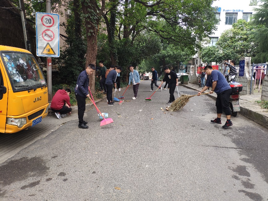 经过简单分工以后,支委率先带头清理道路上的垃圾与落叶,其他同志们也随即一起行动,将北校区的主要道路进行清理干净。然后将北校区门前两侧摆放凌乱的车辆进行挪移,并摆放整齐。