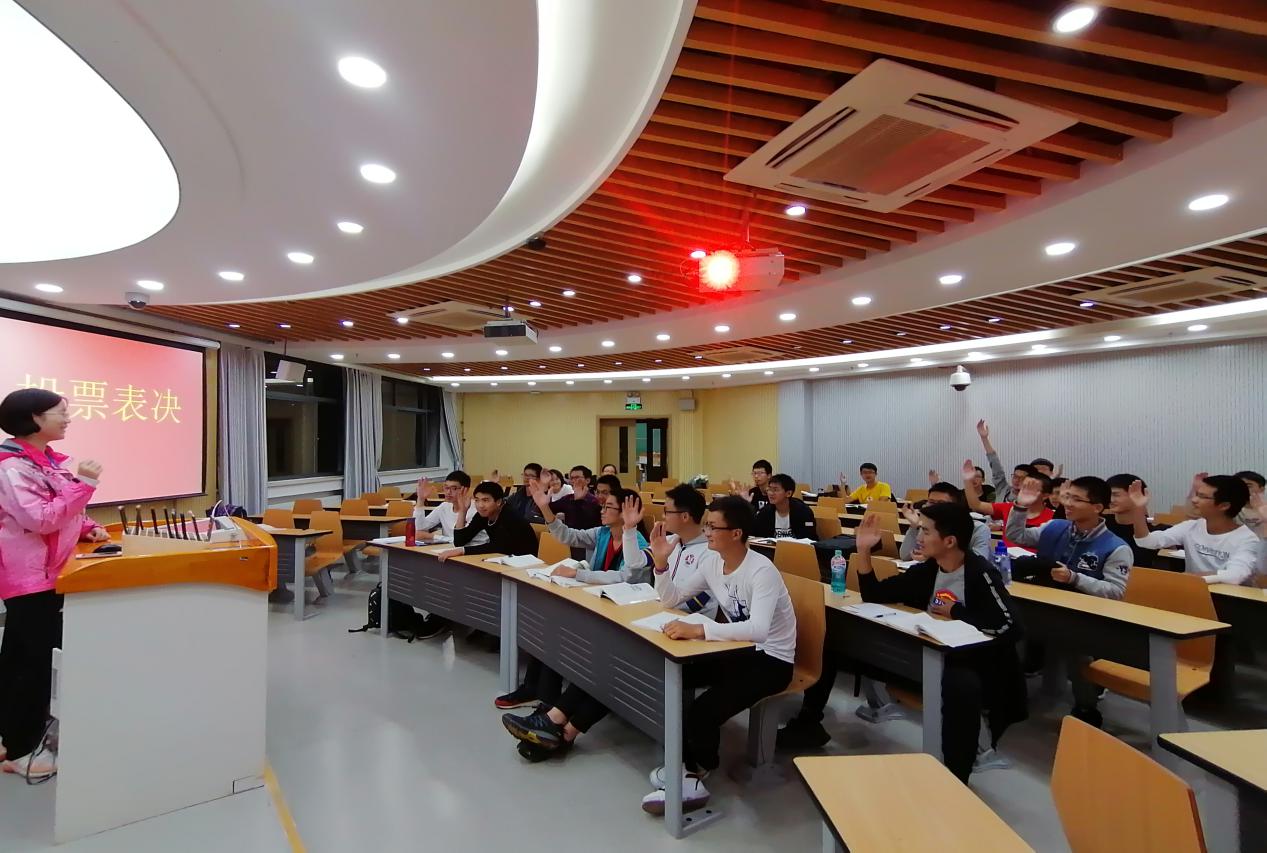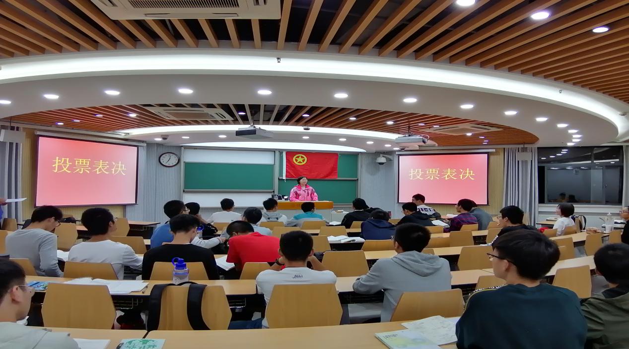 首先由团支部书记李锐渊向全体同学介绍本次大会的主要内容。本次大会要求对已经推选出来的通过团章团情考核的几名优秀团员进行投票,是否同意推荐他们成为入党积极分子。团支部书记李锐渊首先向大家展示出本次推优名单,再告知大家权衡后举手投票是否同意推荐名单上的同学成为入党积极分子。