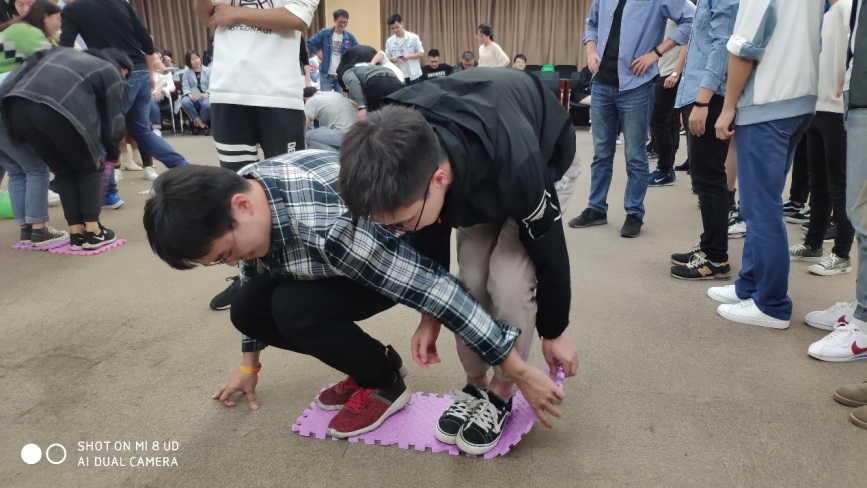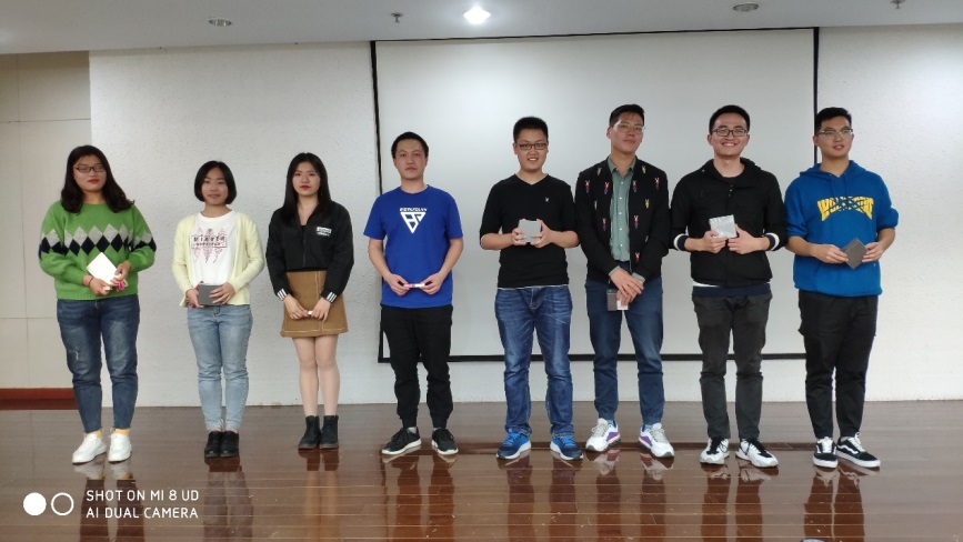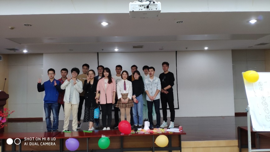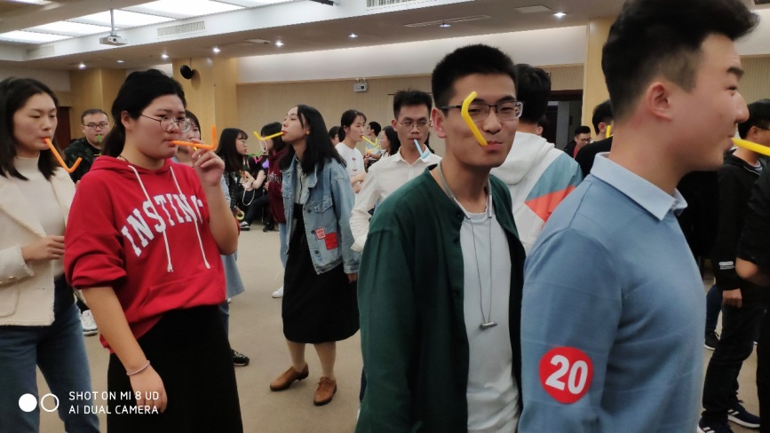 “美丽邂逅,怦然心动”主活动晚会于11月3日晚19点在西区科技实验楼2楼会议室正式开始,参加此次晚会的同学很是积极,现场到场人数在150人左右。晚会主要分为5个环节:“一块五毛”暖场预热、自行组队、“过河拆桥”、“吸管运输”和“背靠背夹气球”,游戏过程中同学们的参与积极性特别高,现场氛围特别好。活动最后,各小组成员根据游戏积分排名评出了第一、二、三等奖各一组,获奖小组全体成员依次领取了丰厚的游戏奖品并合影留念。晚会结束后,美丽邂逅项目组的现场工作人员也进行了合影留念。