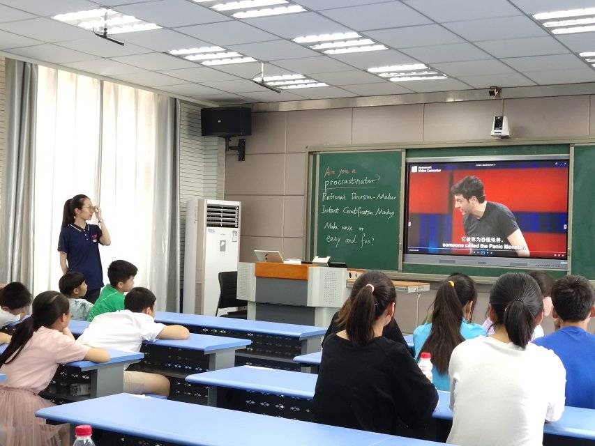 然后,陆霏旸同学为大家准备的“拖延症的危害与治疗方法”课程,通过观看TED演讲--《拖延症患者的爱与罚》以及共同讨论治疗拖延症患者方法,同学们意识到了拖延症对身心健康的消极影响,学习了一些治疗方法,这对中学生的现在和未来都有积极意义。