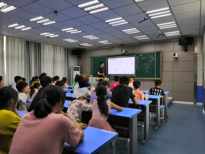 下午两点,炙热的太阳让田间的菜苗都焉了,但实践团仍然冒着酷暑,准时赶到学校,给如饥似渴的孩子们以知识。知识,按照科大的传统,总是分成理论和实验。先有理论基础才能指导实验,在实验中更好地领会理论的真谛。今天来的小朋友们,大多处在小学高年级和初中,正是求知若渴的年龄,他们对任何理论都有极大的兴趣。