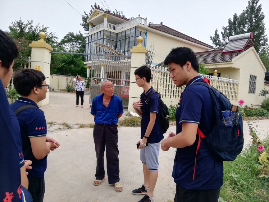 稍作休整后,实践团分为了四个小组,对大堤旁的高庄村进行走访调查,询问了当地村民关于91年的大洪灾及其影响和他们的家庭情况等问题,当地村