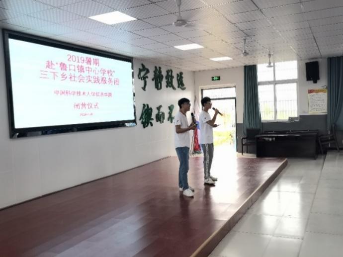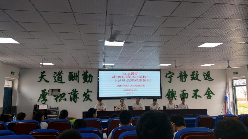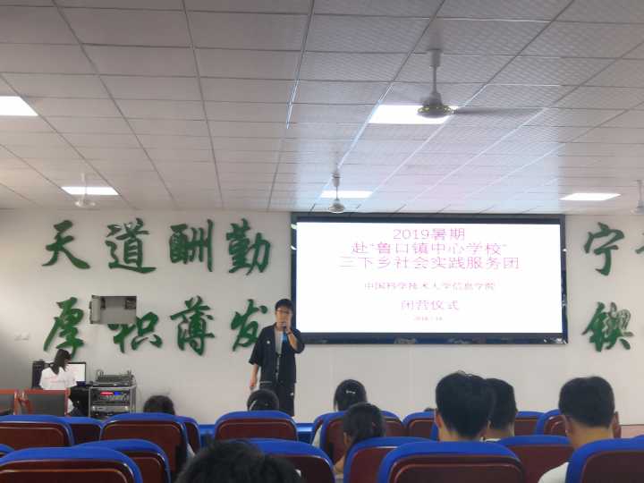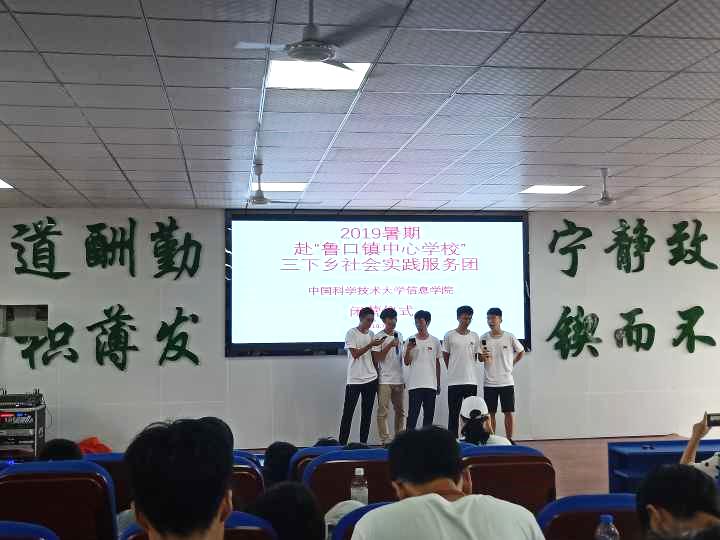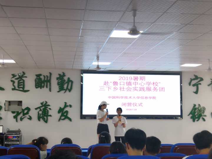 2019年7月19日早晨,中国科学技术大学信息KY.COM开元体育(中国)科技公司2019暑期赴“鲁口镇中心学校”社会实践团,与鲁口中学的师生们最后一次团聚在教室中,对这次活动进行了回顾,随后开始闭营仪式。