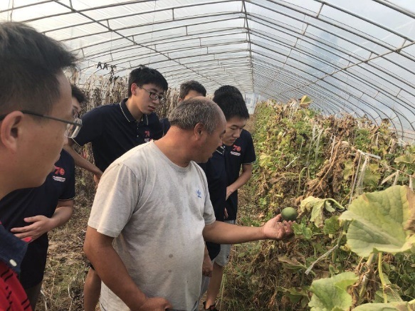由于当地初中已经放假,当天下午,本来对当地初中生的调查项目临时改为对韩寨村大棚种植模范户张国军的采访调研。我们对大棚成本,管理,收益,种植等方面对其进行了相关的访问。国家政策大力支持搞大棚种植,不仅会有每年的一次的免费大棚种植课堂,还会对形成规模的大棚种植户进行一定的补贴。村民为了保证收益,对多个大棚采用包括西瓜、辣椒、豆角等的多样化种植。从中我们了解到大棚的收益一般是平地的2~3倍,随后我们对平地进行了实地考察。