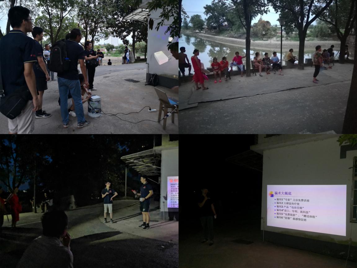 到达后沙村,夜幕降临,队员们打开投影仪,放映精心准备的宣讲材料并加以解释。宣讲的内容包括防诈骗、慎重购买医疗保健品等贴近生活的方面,为了使提高宣讲的效果,一些队员编排了有趣的小品,模拟一些现实中可能发生的诈骗案例来提高村民的防诈骗意识,小品诙谐幽默、寓意深刻,吸引了许多当地的人前来观看。