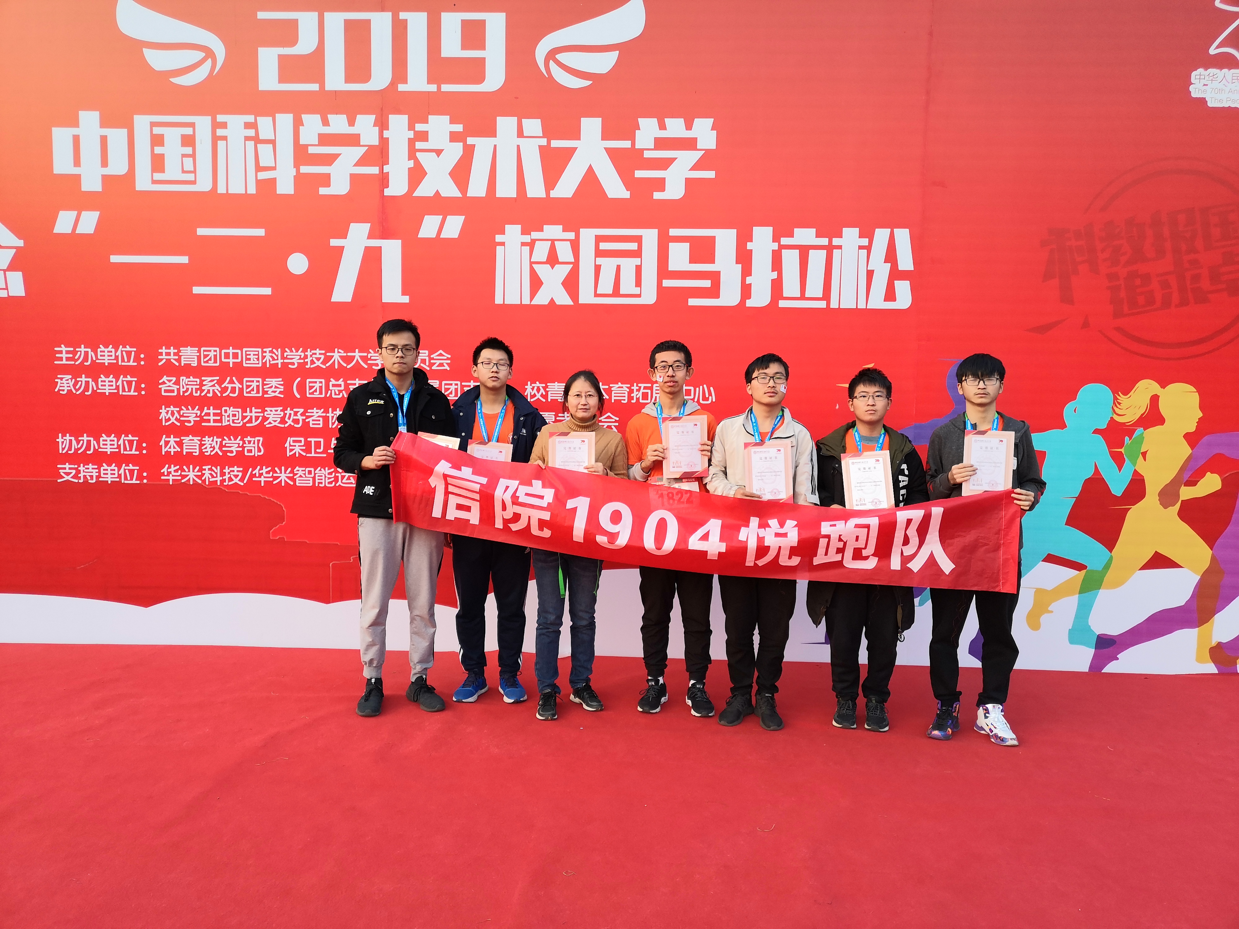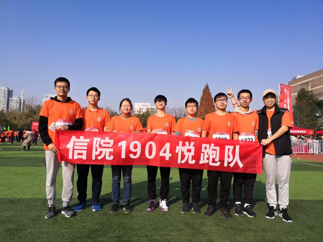 2019年12月8日下午,信院本科19级4班的7名同学与班主任徐旭老师参加了2019年 “一二·九”校园马拉松活动,展现了我班同学对红专并进理念的践行与青春活力。