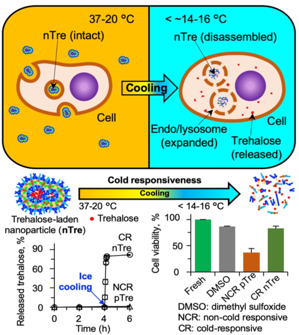 图1、冷响应纳米胶囊封装的海藻糖用于细胞低温保存