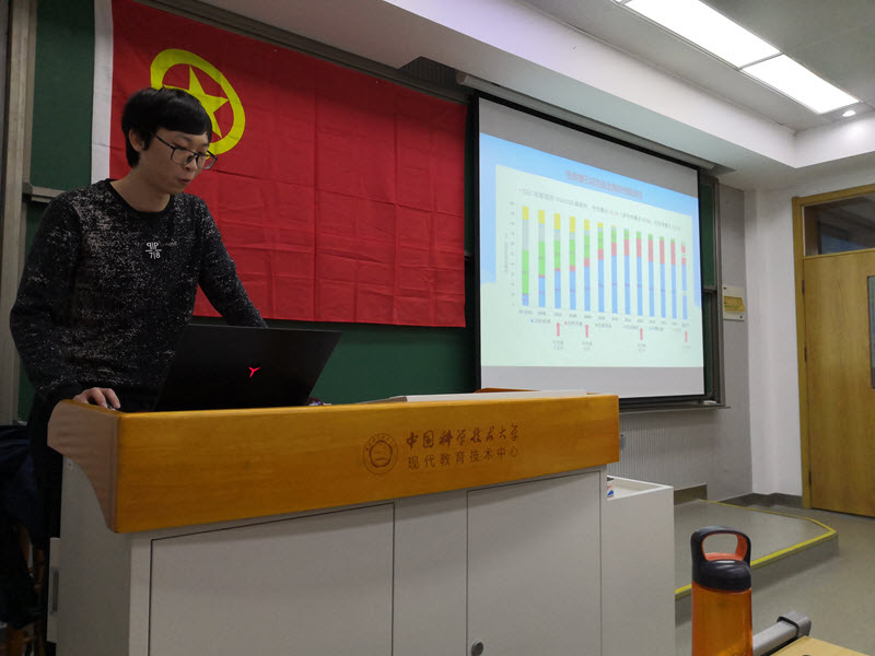 接着,由刘云龙同学为同学们介绍了艾滋病的传播历史以及现状,他以数据可视化的方式为同学们展示了艾滋病高发人群的变化以及患艾滋的人群在大学生的占比等。接着,他又补充介绍了一些可能传播艾滋的生活陋习,为同学们敲响了警钟。