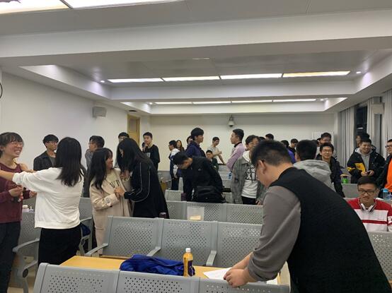 首先进行的是“宾果游戏”,心理委员给每个人分发了一张表格,上面写有九个有关个人性格爱好方面的问题,要求大家去找九个不同的人围绕关键词句提问,如果对方回答“是的”,就请对方在对应的表格里签字,如果回答“不是”,只能再去找其他人签字,直到每一个问题下面都收集到一个签名。现场气氛十分热烈,时常传出“原来你也是这样啊”的惊呼声。很多平常很少接触的同学突然找到了彼此的共同点,不由发出爽朗的笑声。“宾果游戏”之后,同学们相互了解得更深了,彼此间也在不知不觉中亲近了许多。