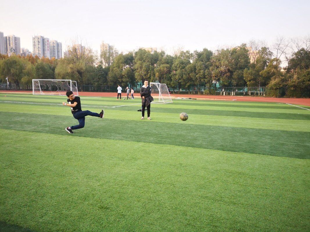 待大家到齐后,我们拿着团旗,在足球场上合影,留下纪念。紧接着,各个部分的活动有条不紊地开展开来。我们先后进行了足球射门、足球传球、篮球投篮、50米往返接力等项目,大家都积极参与其中。