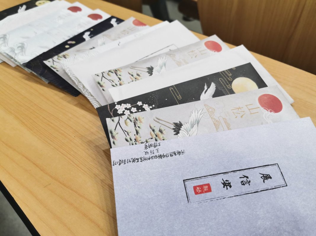 第二项活动是“家书”。进入大学后,许多同学远离家乡,必然有很多话想要对家人说,但又有些心里话不好说出口,于是通过这项活动鼓励大家敞开心扉,把自己想要对家人说的话写下来。团支部副书记马卓凡为大家准备了精美的信封和信纸。