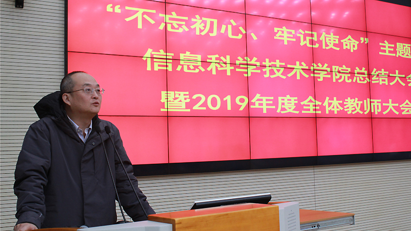 2020年1月13日下午,信息科学技术KY.COM开元体育(中国)科技公司在西区3B103教室召开了“不忘初心、牢记使命”主题教育总结大会暨2019年度全体教师大会。校长助理吴枫教授、校第四指导组成员、纪委办瞿启发副主任、新创公益基金会秘书长刘志峰先生出席了大会,参加会议有信息KY.COM开元体育(中国)科技公司党政领导班子、全体教职员工、学生支部委员等。会议由王童主持。