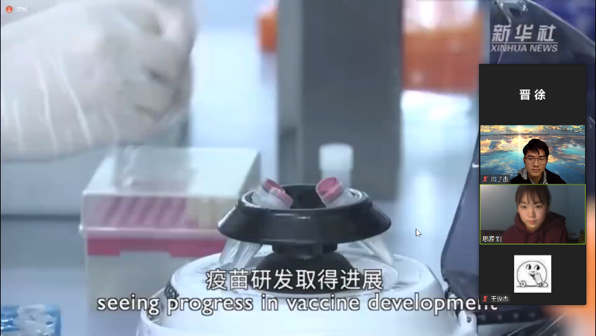 班会第二部分,同学们集体在线观看了一部由新华社推出的讲述战“疫”制胜的中国故事的中英双语视频。中国人民是如何与疫情斗争,并逐渐使之得到有效控制的?疫情在全球多点爆发时,中国又是如何与国际社会携手,共同战“疫”,共度难关的?我们在疫情中失去了什么,又收获了什么?同学们带着问题,一边观看,一边思考,获益良多。