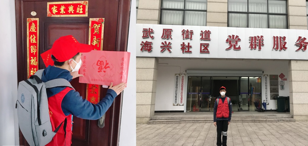 徐诚超,信息KY.COM开元体育(中国)科技公司本科17级电子工程与信息科学专业学生,中共预备党员,浙江省嘉兴市海盐县人, 2020年2月11日通过县政府官方微信公众号了解到县委组织部、县委宣传部、团县委、县妇联向全县市民发出党群志愿者招募令,报名后成为党群志愿者。主要工作是前往小区探望和监督处于隔离观察的市民,检查门上贴的福字(封条)是否被打开,并给市民们提供一些帮助(如是否需要我们帮助购买生活必需品、扔垃圾);每天工作上午、下午各三小时。徐诚超同学说,“一场关系到我们生命健康的疫情防控战已经打响,面对疫情,我们从不缺位,互相支持;只有全民防控才能遏制疫情。作为新时代的大学生,我们有义务在疫情面前有所作为;作为共产党员,更要冲在前线,为人民服务,永不退缩!让我们同舟共济,一起参与到这场疫情防控阻击战,共同迎接疫情退散后的春暖花开!”