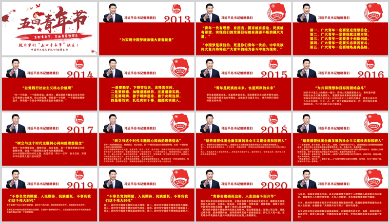 五四当天,班级整理制作了习近平总书记8年来寄语青年的重要讲话PPT供同学们学习。