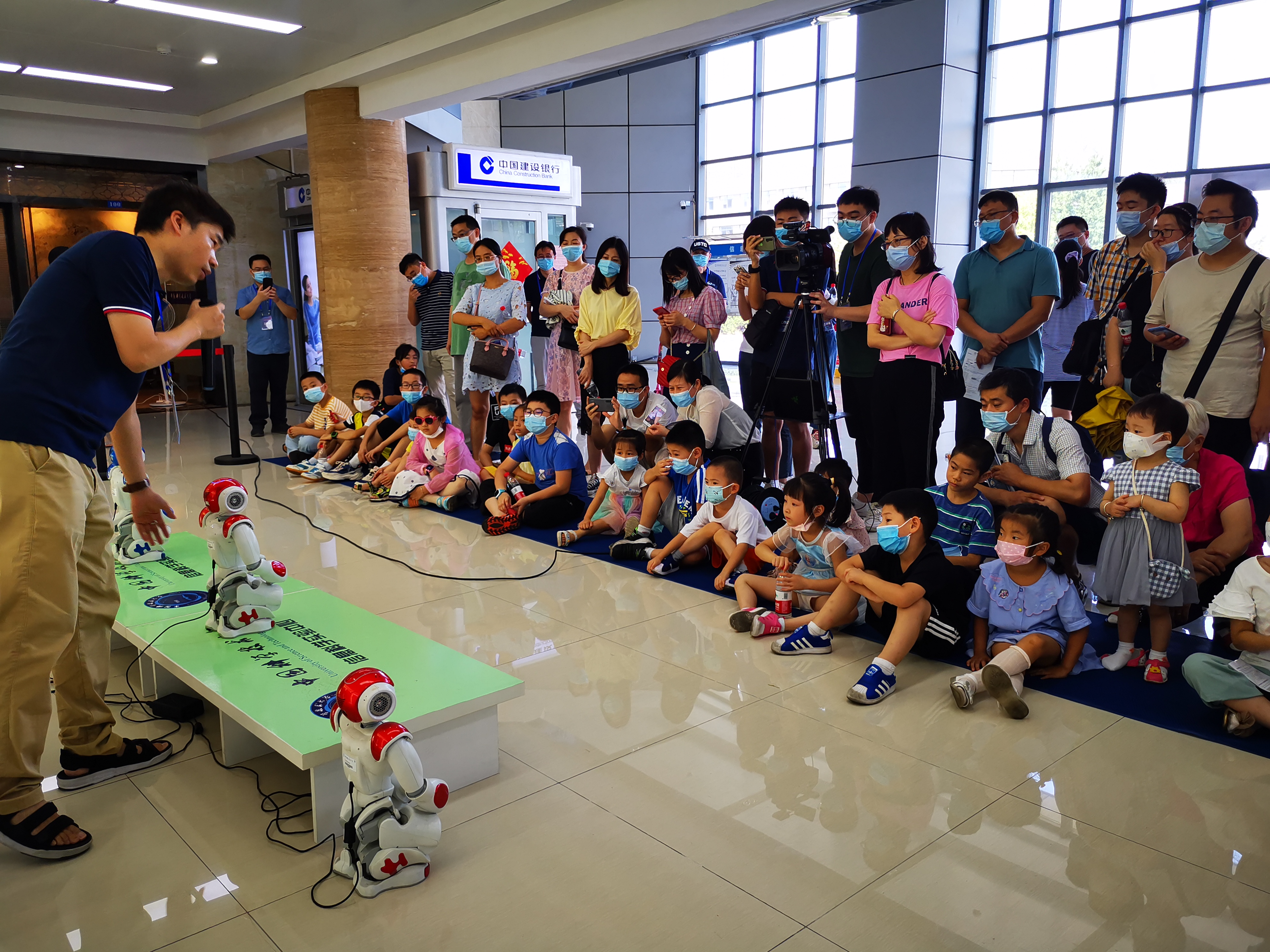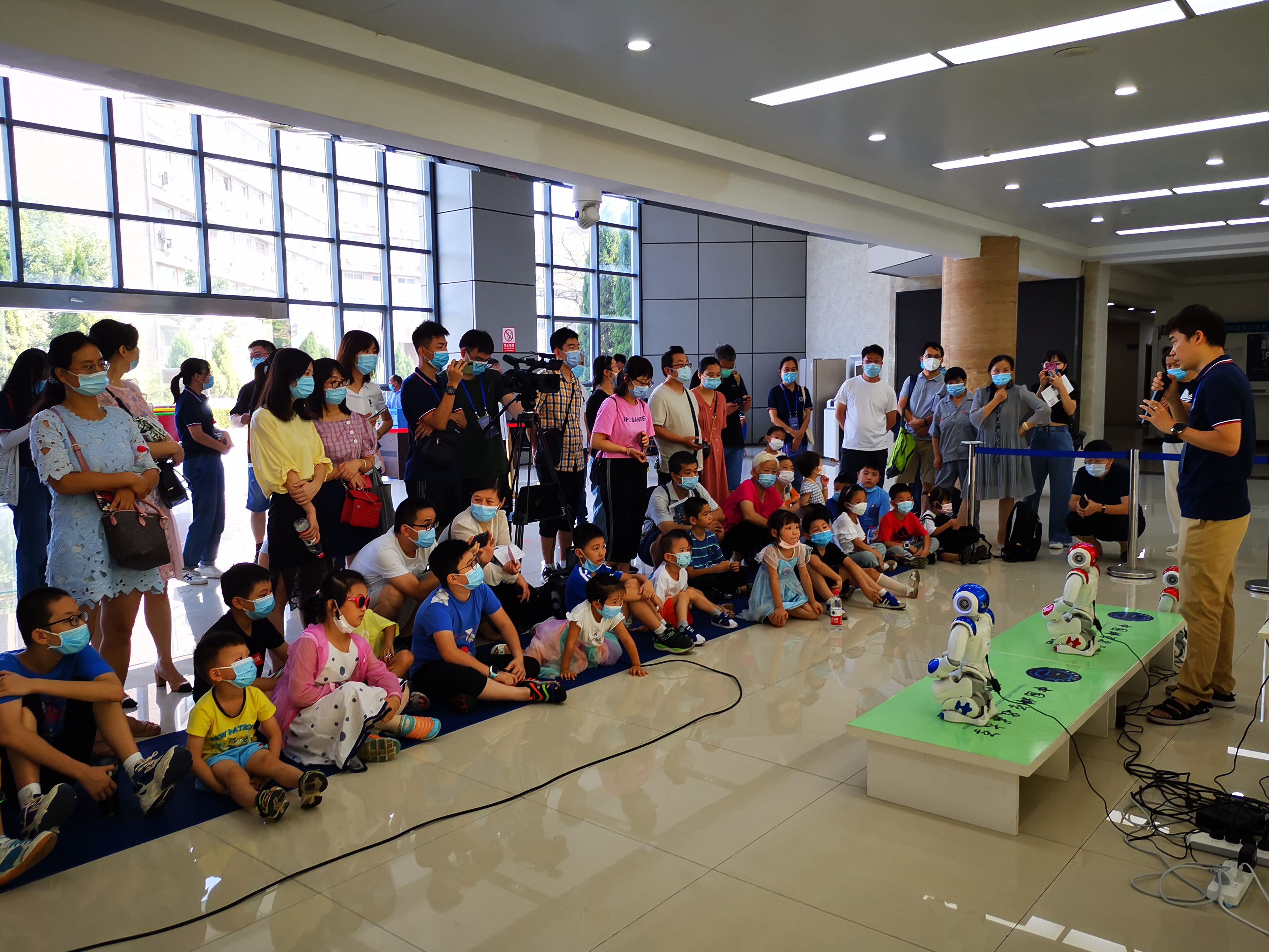 信息科学技术科普点仿人智能机器人NAO是一种多功能双足仿人机器人,具有25个自由度,配有摄像头、多媒体设备及多种传感器,通过开放的软件接口编程,能灵活模拟人类动作。往年都会吸引大批的观众,今年由于新冠疫情防控工作的需要,线下活动主要是面向抗疫战疫人员及家庭开放。