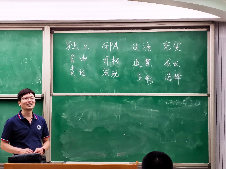 方老师首先请同学们思考来到科大的原因,由此引入对大学生涯的规划。要做好规划,首先要充分了解大学生活,在讨论中,同学们踊跃发言,积极表述自己对大学生活的看法,从自由、迷茫到过渡、成长,大学生活被浓缩在一个个关键词中,展现了同学们对它的理解与思考。那么如何适应与高中生活截然不同的大学生活呢,方老师给同学们提出了几点建议。一是“清零”,一切过往,皆为序章,无论过去是辉煌亦或是失意,现在大家都站在同一条起跑线上,一起朝着未来出发。二是“不以成败论英雄”,不应过分执着于结果,而是要不断的总结反思,从结果中获得更大的收获。三是“融入”,同学们来自祖国各地,文化地域方面的差异巨大,要怀着一颗包容的心,求同存异,融入这个大集体。