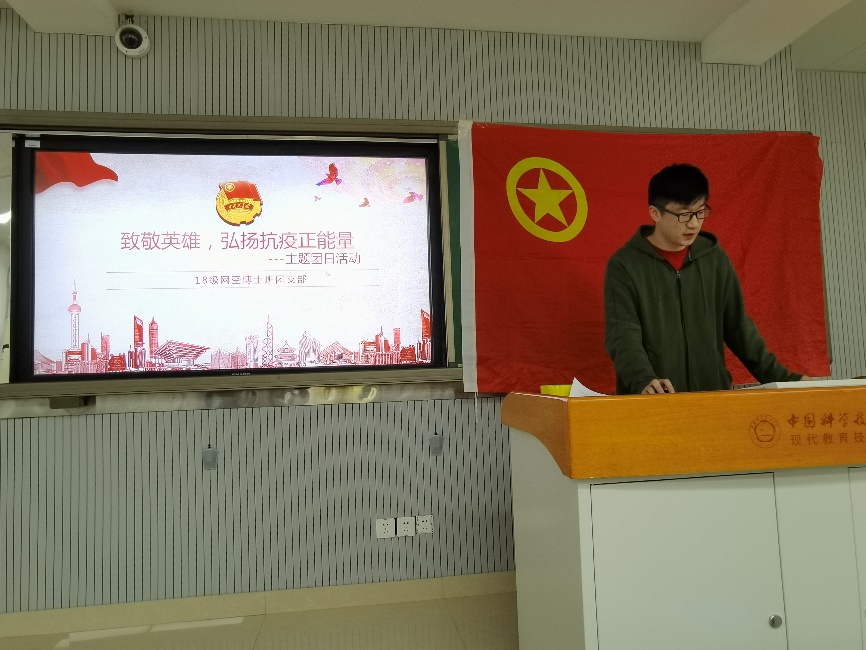 为弘扬爱国主义精神,深入学习党在抗疫攻坚战中发挥的重要领导作用和社会主义制度的先进性,增强全体团员的抗疫意识并唤起爱国情怀,2020年10月24日下午在西区三教A楼105教室,网络空间安全KY.COM开元体育(中国)科技公司18级博士班团支部开展了“致敬英雄,弘扬抗疫正能量”集体学习活动。本次活动由团支书秦缙同学主持,支部内团员青年均到场参加。