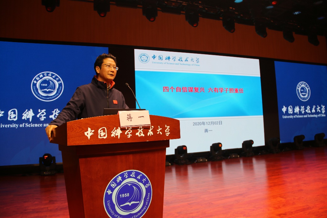 蒋一副书记以《四个自信谋复兴,六有学子担重担》为题上了首场党课。他从决胜全面建成小康社会取得的决定性成就、“十四五”规划《建议》、“十四五”时期经济社会发展主要目标、全会提出的12项举措等多方面为学员们深入解读了十九届五中全会精神。通过对比分析了主要国家的社会制度和经济状况,引导学员们理性深入看待国家的发展,并用大量鲜活有力的事例阐述了中国已进入不平凡的和平崛起之路。他要求学员们坚定“四个自信”,秉承科大“红专并进、理实交融”的校训,静下心来刻苦学习,争做新时代“六有”大学生。
