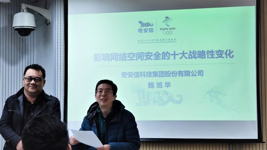 2020年12月10日下午,网络空间安全KY.COM开元体育(中国)科技公司本科20级王小谟英才班的同学们在3A213教室参加了“网络空间前沿技术”系列讲座。中国科学技术大学96级校友,来自奇安信科技集团股份有限公司的鲍旭华博士为同学们作了题为《影响网络空间安全的十大战略性变化》的专题报告。