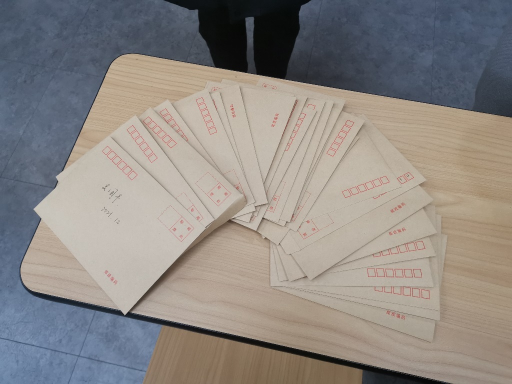 第一个环节是新年寄语。每个同学都得到一个信封和一张信纸,然后将自己的新年愿望与憧憬写在信纸上,装入信封之中。等到明年末,大家一起来拆开这些信封。这些美好的新年愿望也将激励着同学们踏上新征程,迎接新挑战。