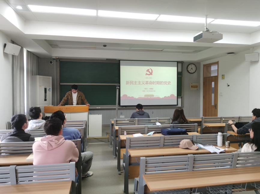 王垚飞带领大家学习了党史党章小课堂(二):学习党史,忆苦思甜。他列举了党发展历史中的几个与“吃”有关的小故事,通过讲述吃饭问题的变迁,展现了党的初心如始、本色不变,全力朝着国家治理体系和治理能力现代化目标迈进。通过党史党章小课堂,同学们对共产党领导下的社会主义中国发展进程和发展成果有了进一步的了解。