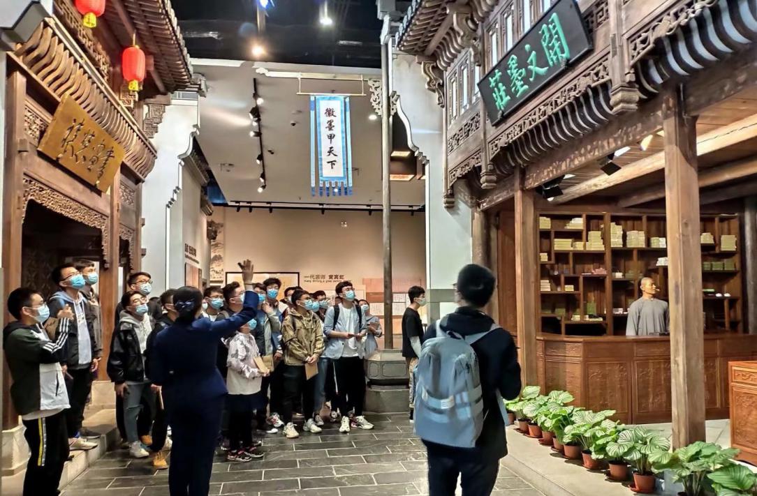 在讲解人员的带领下,同学们领略了安徽流传甚久的茶文化、文房四宝文化,了解了曹操、华佗、李鸿章、陈独秀等名人的故事,欣赏了徽式建筑的奇巧之美,体会了黄梅戏花鼓戏等传统戏曲的独特魅力。除此之外,场馆内设有互动屏幕也为大家动态地展示了安徽千年的历史巨变。