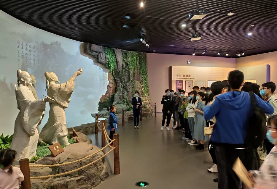 乘车前往安徽名人馆的途中,班主任向大家介绍了本次参观活动的具体内容和一些注意事项并叮嘱大家佩戴好口罩,注意安全。约四十分钟后到达目的地,随后大家排队有序进入馆内。馆内共设八个展厅,按照时间脉络从远古—先秦到清朝—新中国分为“文明曙光中的先祖”、“智慧星空中的先知”等八个主题,介绍了安徽历史和文化精髓,通过展现安徽历史上的杰出人物,体现了安徽物华天宝、人杰地灵的美好形象。