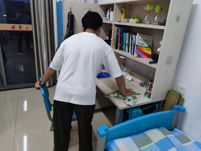 随后,同学们回到了宿舍对宿舍进行彻底的清理。作为同学们日常生活的空间,对宿舍进行彻底清扫既实现了对同学们切身生活的环境的改善,又能在促进同学们参与劳动的同时,达到提升同学们珍惜劳动成果的意识的目的,一举多得。