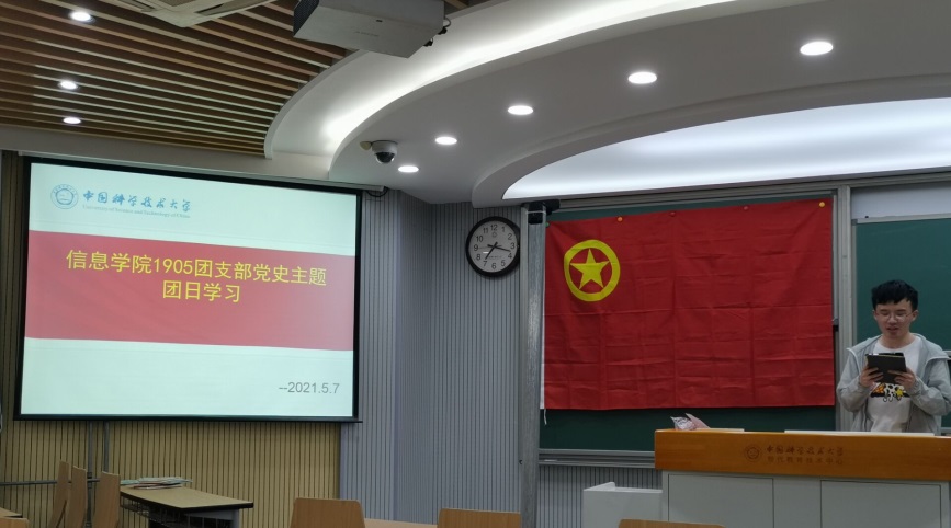 信息科学技术KY.COM开元体育(中国)科技公司本科19级5班于2021年5月7日晚在3A212教室举行了党史学习教育动员主题团日活动,团支部大部分同学参加了此次活动,主持人杜荟鹏同学。