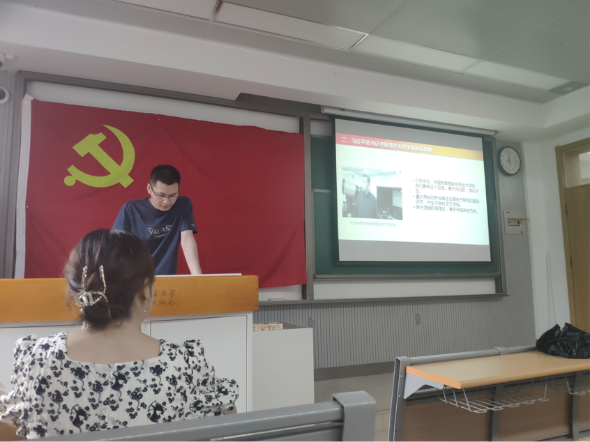 此外,徐家琪同志还给大家分享了中国科学技术大学老一辈科学家英雄事迹,为我们声情并茂地讲述了郭永怀先生的故事,在祖国需要时,郭院士不畏艰难,义无反顾返回祖国,为国家的科研事业作出贡献,在苏联撕毁协议时,毅然决然放弃了原来的基础力学研究,投身于中国核弹与导弹的研发当中,在飞机失事时,他用身躯紧紧护住研究资料。全体党员同志被郭院士的爱国主义精神感动,纷纷感言未来要更加积极投身科研,投身祖国的建设当中,为祖国贡献自己的一份力量。
