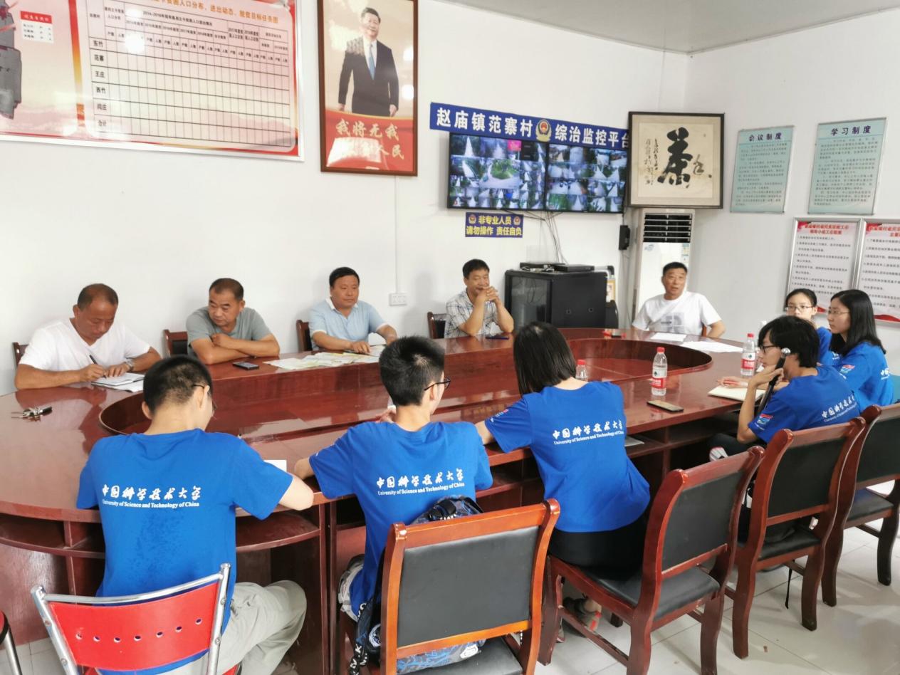 而另一小队则在阳思老师和殷晟明同学的带领下到达范寨村村委会,并向当地扶贫干部了解了范寨村近几年的扶贫项目以及成果,最后在村干部的建议下确定了接下来的调研地点。