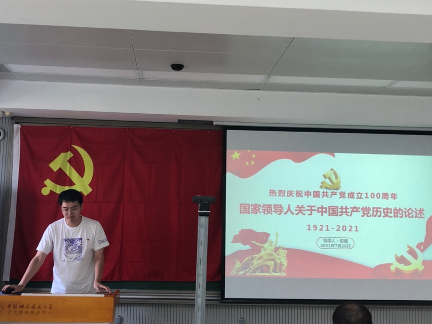 之后,由倪健作为领学人,带领大家学习国家领导人关于中国共产党历史的论述。倪健参考《毛泽东邓小平江泽民胡锦涛关于中国共产党历史论述摘编》和习近平《论中国共产党历史》两本书,按照没有共产党就没有新中国、没有共产党就没有社会主义中国、没有共产党就没有中国特色社会主义、党的百年光辉历程给我们的深刻启示四个部分介绍了国家领导人关于中国共产党历史的论述。支部党员对党的历史有了更深的了解,表示将更加坚定理想信念,矢志拼搏奋斗,走好新时代的长征路。