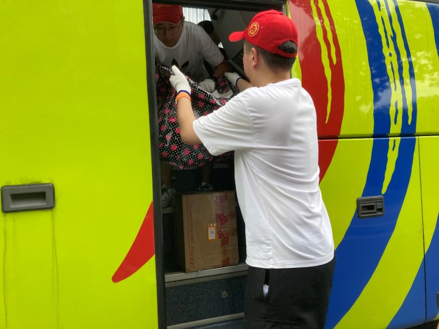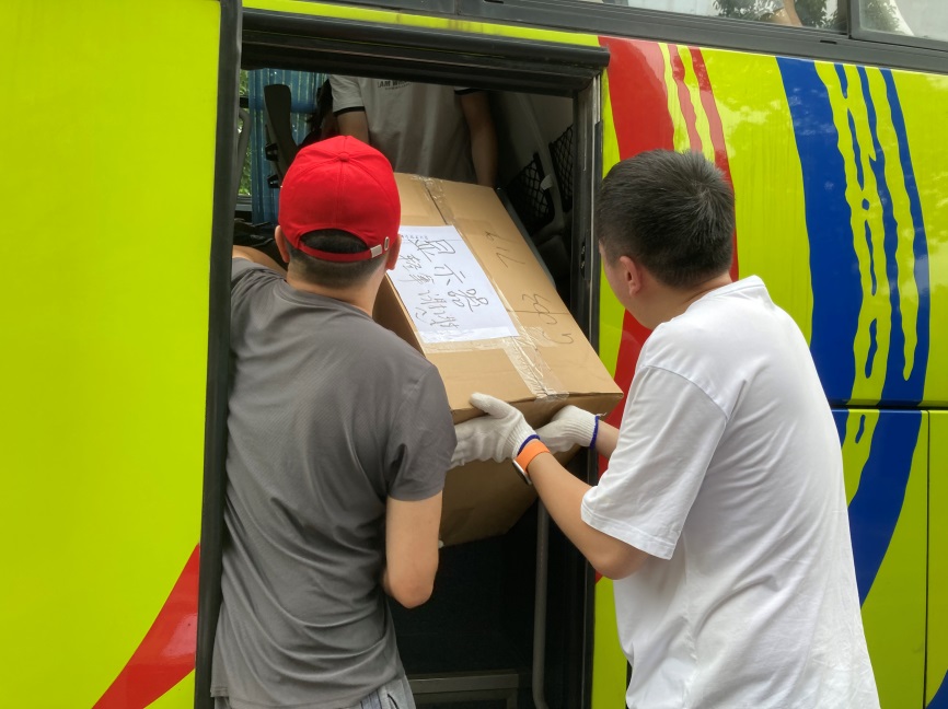 在行李运抵装卸地后,党员同志们有条不紊地将小推车上的行李卸下,装入跨校区运输的班车上。看着一辆辆满载行李的班车不断发出,被帮助的同学们的一声声感谢,虽然大家汗流浃背,但每一位党员都乐在其中,为能给同学们提供力所能及的帮助而自豪。