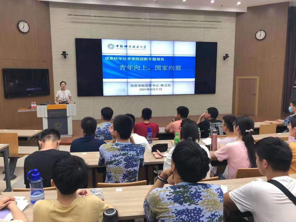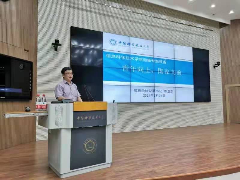 “青年强则国家强,青年兴则国家兴。”陈书记以“青年向上,国家向前”为题为同学们进行了报告。报告内容包括信智学部介绍、大学学习的几个阶段总结、信院本科专业介绍、树立自信挑战自我以及争做六有大学生五大内容,帮助同学们更好地了解到科大,更快地认识到大学生活与学习的独特性,更深地思考自己大学学习的路线。用科大老一辈科学家的奋斗故事激励新同学红心向党、科教报国。