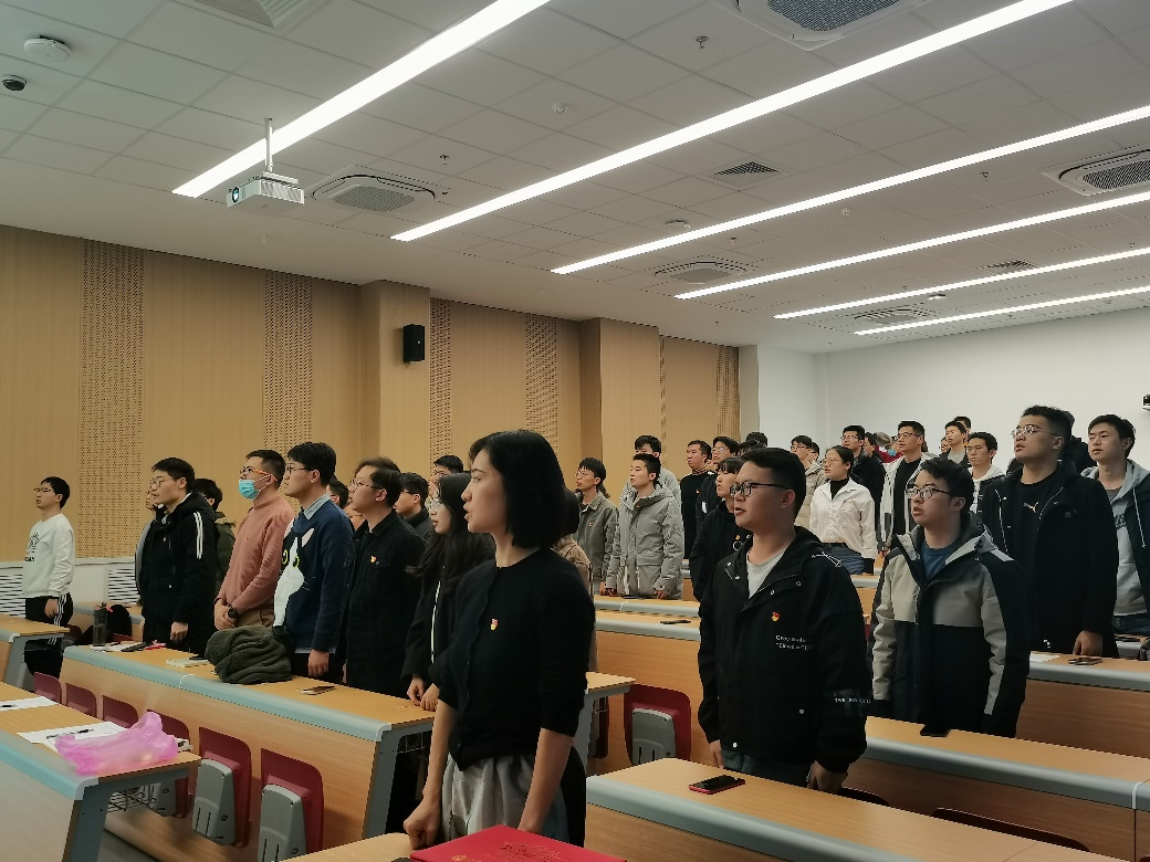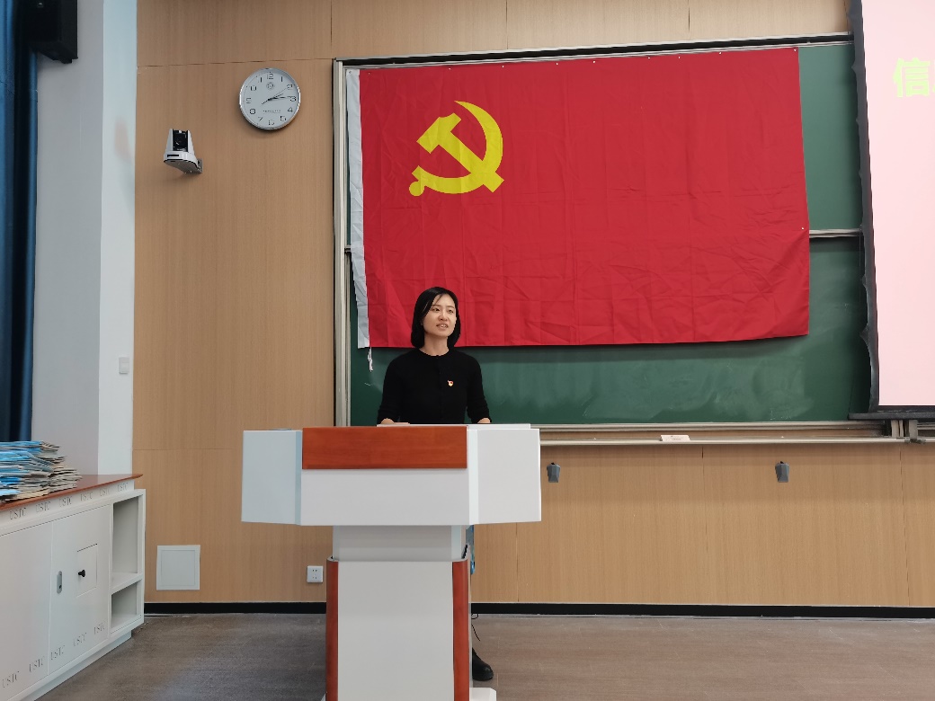 全体肃立,奏唱国歌。激昂的《义勇军进行曲》之后,王童副书记对接下来的支部工作提出了几点要求。首先,各支部做好党员教育工作,认真落实“三会一课”制度。其次,各支部严肃认真对待党员发展工作,严格遵守党员发展相关规定,对组织负责、对同志们负责。最后,她提醒各支部要防范化解意识形态领域潜在风险。
