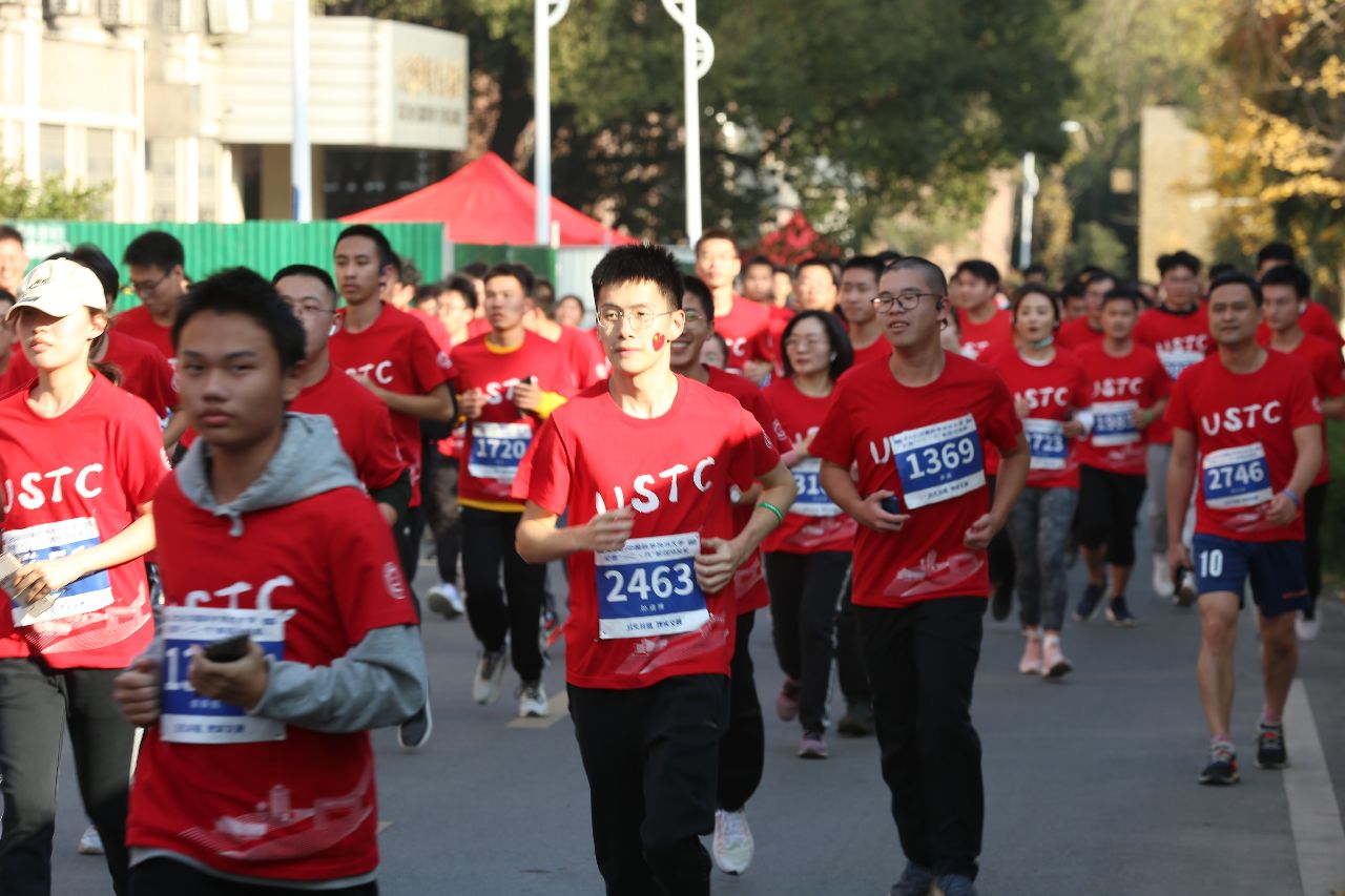 热身过后,随着发令枪响,参与的同学老师们以激昂的热情冲出起跑线。万里晴空,一个个红色的身影行进在寰宇路上、图书馆前、火灾科学国家重点实验室旁……沿途设置了二十多处宣传补给点,供感兴趣的师生们驻足了解。