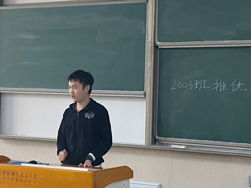 大会开始,春皓源同学先介绍了本期入党积极分子推优大会的推优规则,并对4位候选者进行了简单地介绍。此次入党积极分子推优对象分别是:李沛凡、王铮、段弘宇和汤忠翰。这四位同学在大学入学以来在学习上刻苦拼搏,积极向上;在生活中与他人和睦相处,团结友爱;在思想上积极向党组织靠拢,认真学习党的相关历史与精神内涵。总而言之,这四位同学符合入党积极分子的推优标准。
