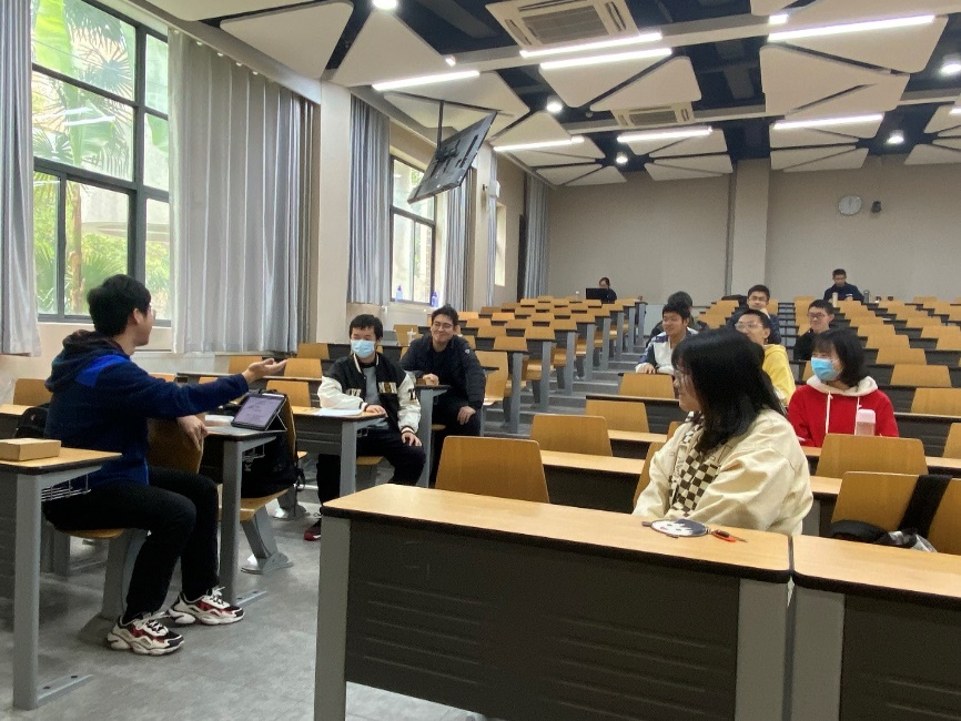 会议开始,梁子豪向同学们介绍了王瑞哲学长取得的一系列成就。无论在学习上还是在社团活动中,王瑞哲学长均有着优异的表现。之后学长从保研、考研以及出国等多个方面为我们作了详细的介绍,并对具体的课程和我们进行了相关的探讨。