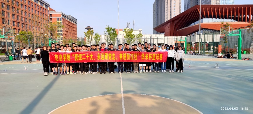 为迎接和学习宣传党的二十大,庆祝共青团建团百年,积极响应“全民健身”的号召,信院2021级本科班于2022年3月至4月在中区篮球场举办“喜迎二十大,永远跟党走,奋进新征程”华米杯大学生篮球赛。