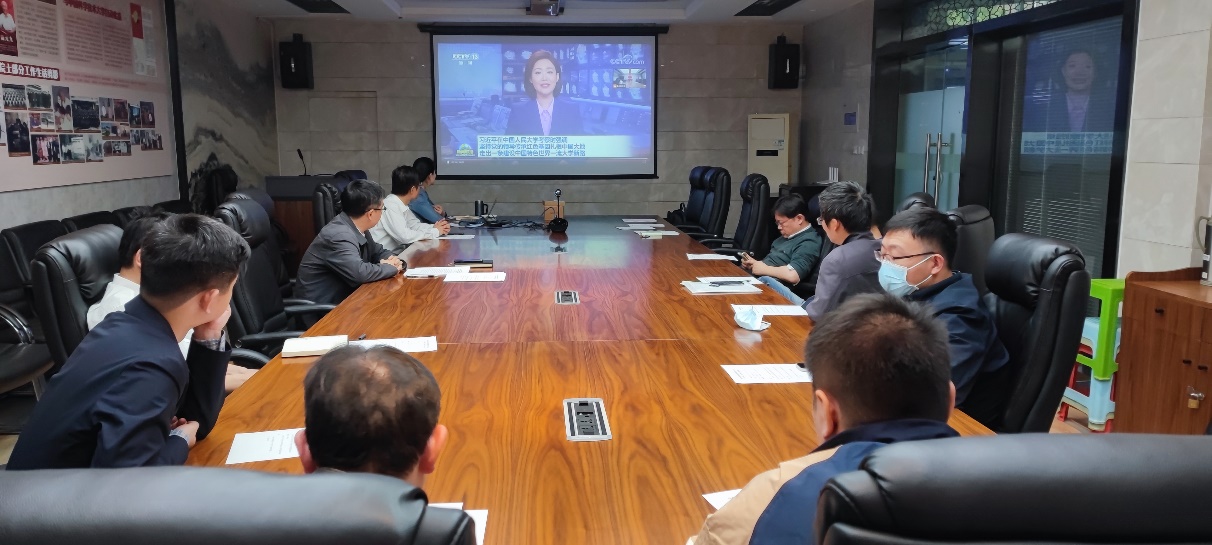最后全体参会同志集中学习观看了习近平总书记考察中国人民大学时的新闻视频,通过学习,教育同志们要坚定理想信仰,坚持党的领导,落实立德树人根本任务,传承红色基因,扎根中国大地,走出一条建设中国特色世界一流大学新路。