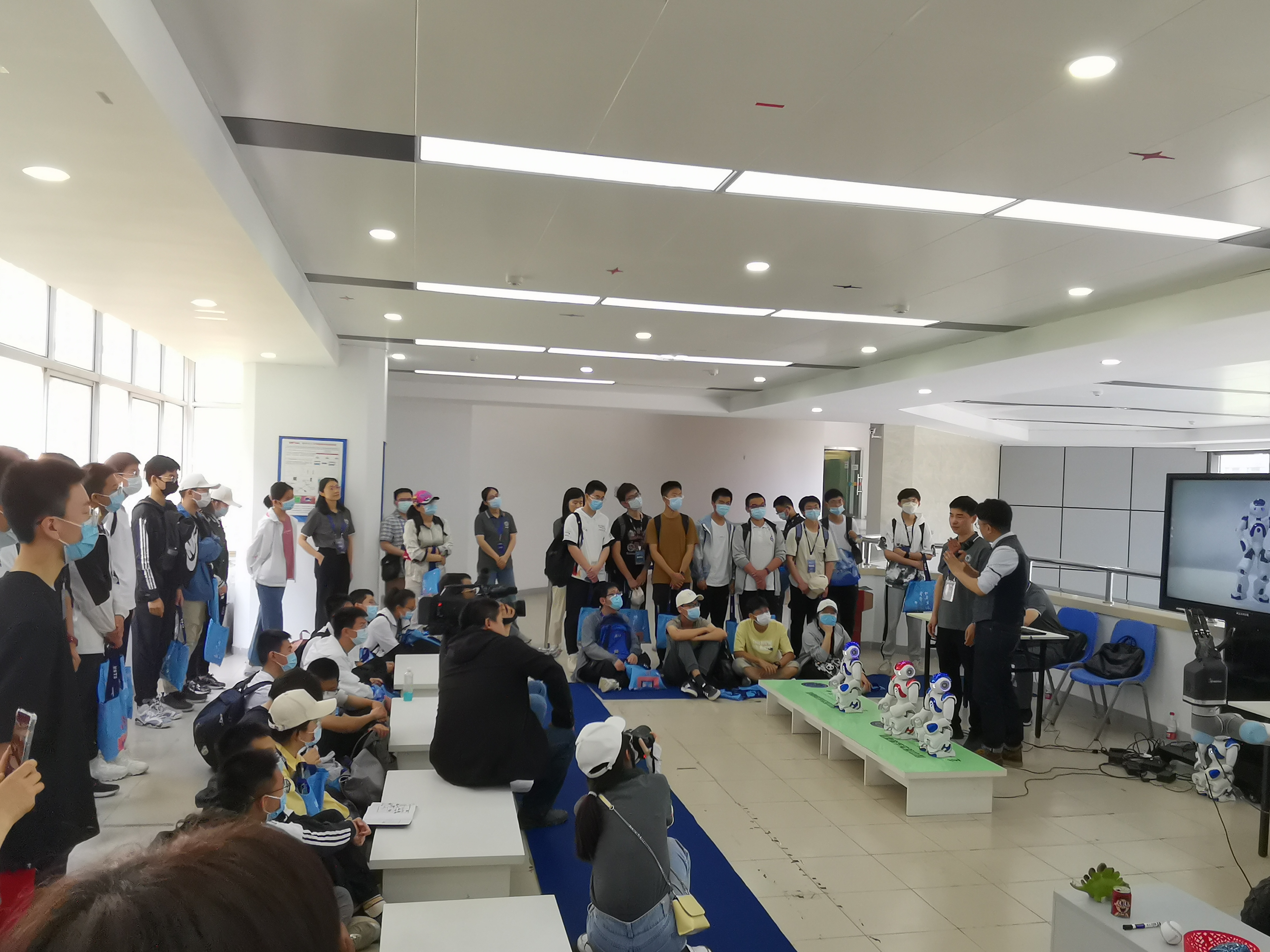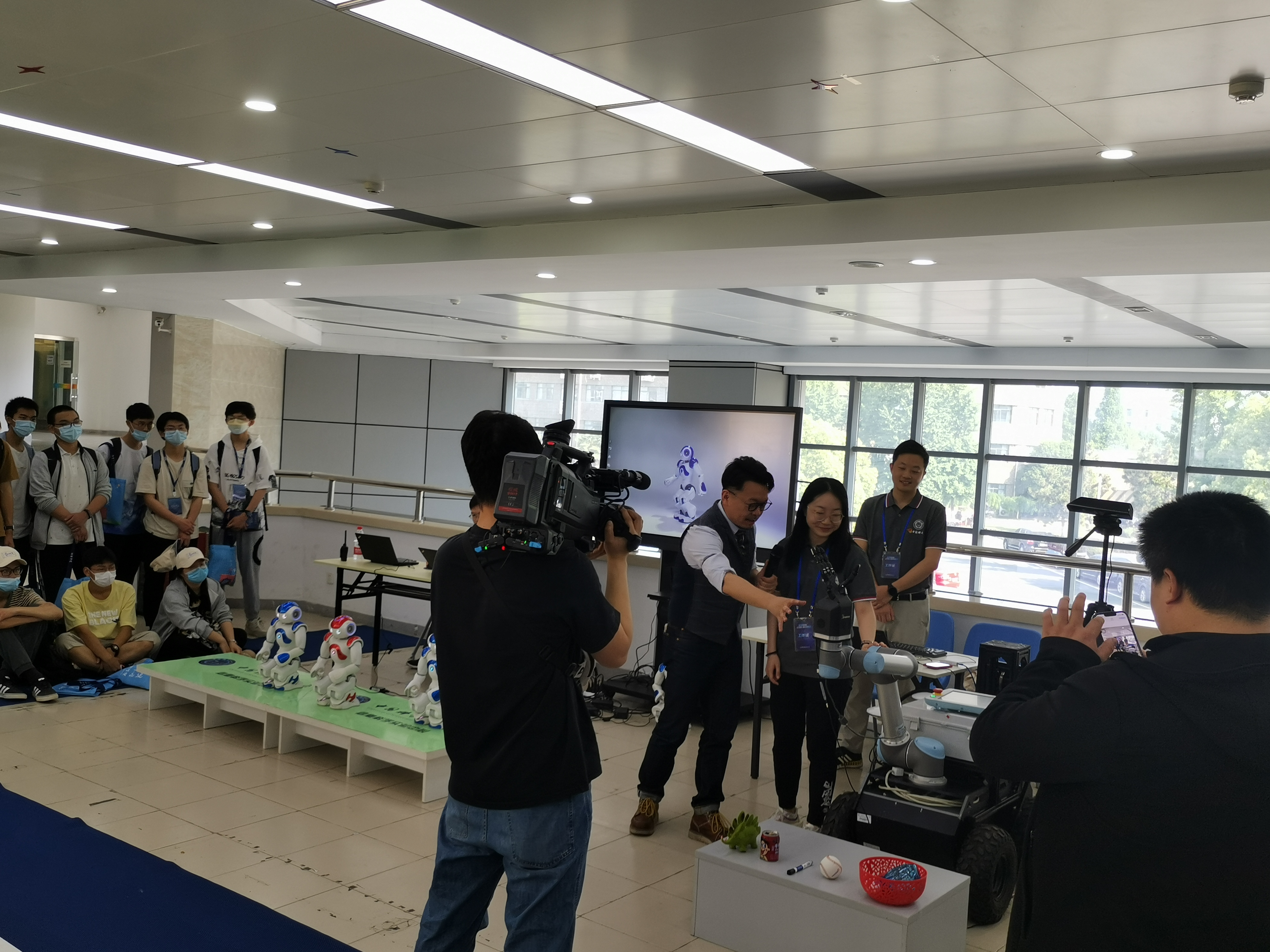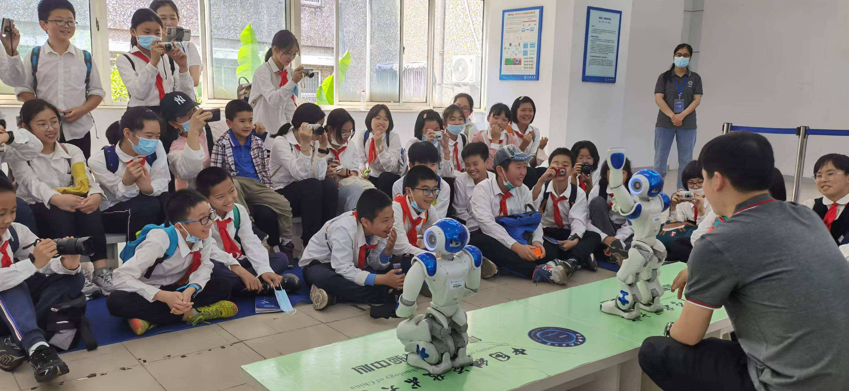 上午8:40,新华网记者首先来到信息科普点进行了现场直播活动,科普点志愿者详细介绍了两款机器人的区别和未来生活应用场景,并现场进行了演示和互动,精彩的讲解和表演让现场的学生发出阵阵欢呼声。