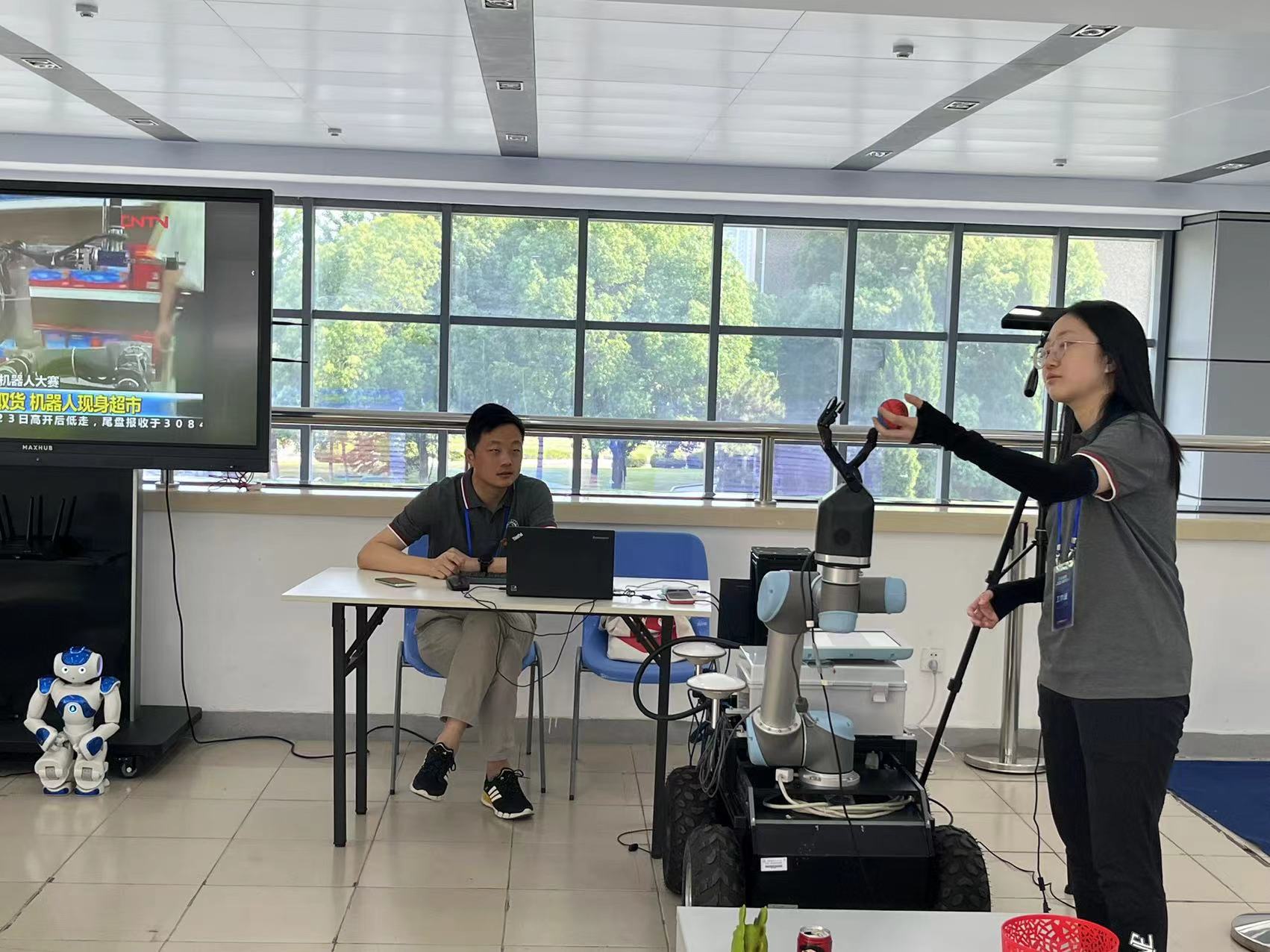 智能机器人Shadow演示灵巧机械手模拟抓取物品,灵巧的机械手演示吸引观众的好奇心和对未来科技应用的向往。