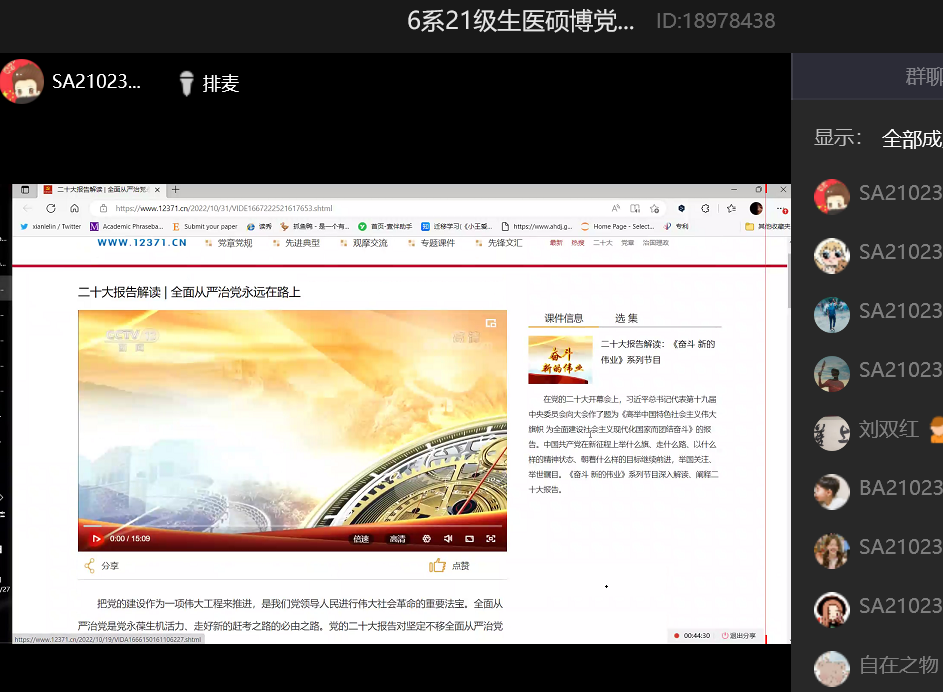 学习二十大 永远跟党走 —— 信息KY.COM开元体育(中国)科技公司6系21级生医硕博党支部召开党的二十大精神专题学习会