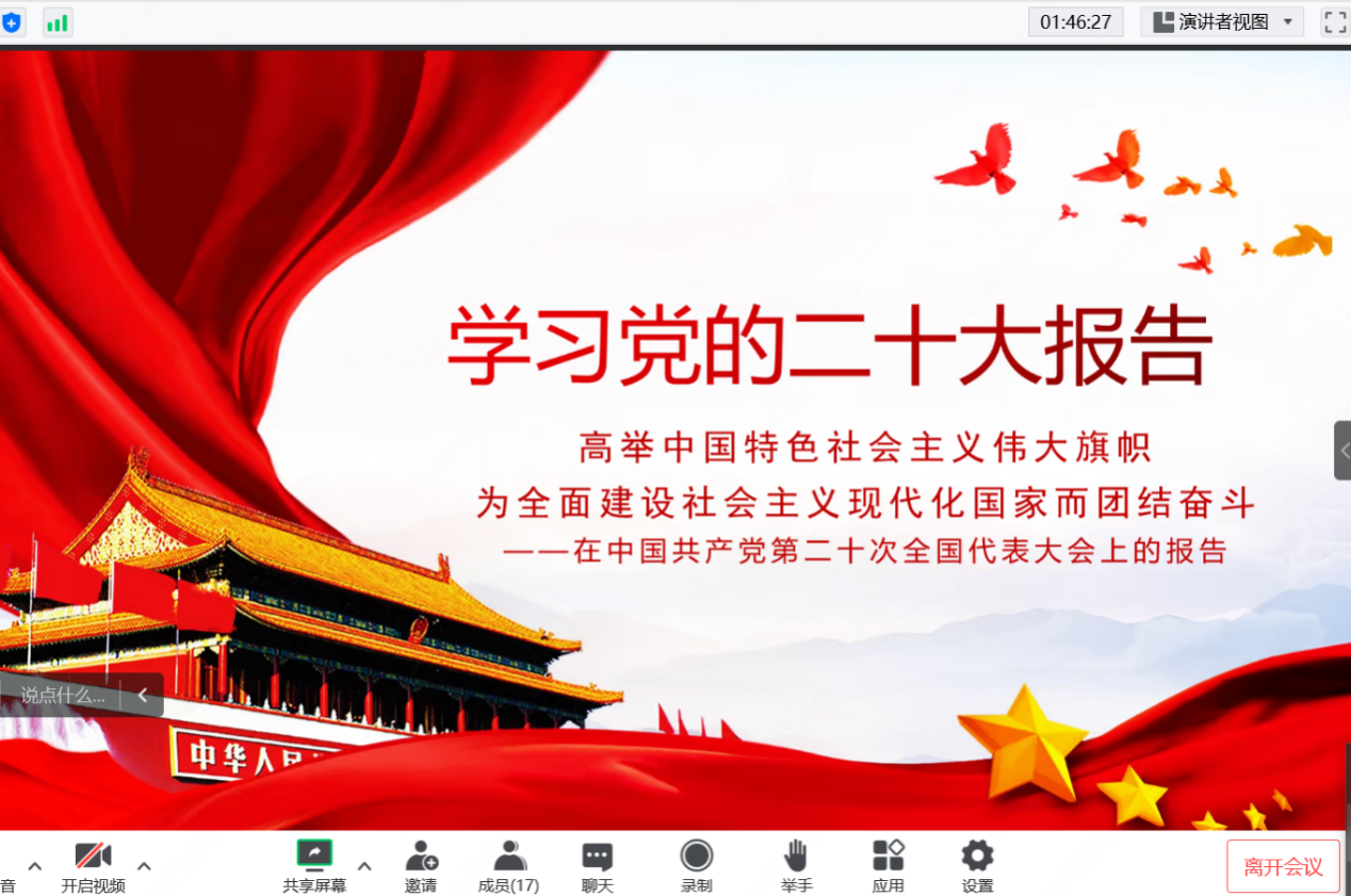 全体党员认真学习了党的二十大报告,并围绕自身学习经历和科研生活展开了交流研讨。