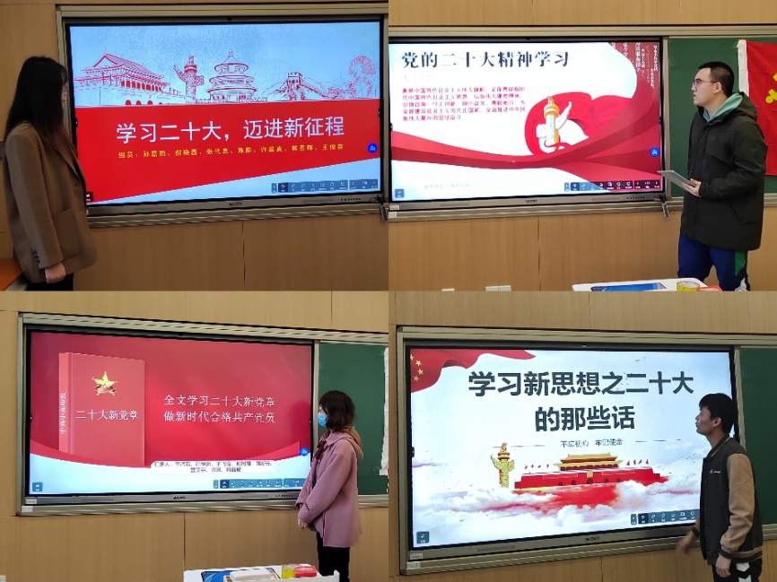 接着,党支部学习小组依次派代表上台与大家交流本组成员学习党的二十大精神的心得体会。