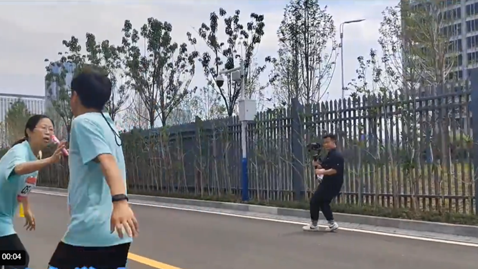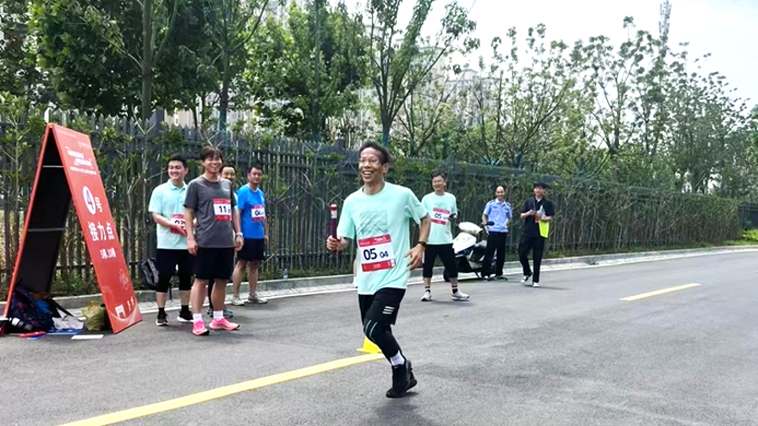 比赛中,老师和同学们奋力奔跑,在同一时间段比赛的5个队伍中始终位列前茅,最终获得小组第一名。