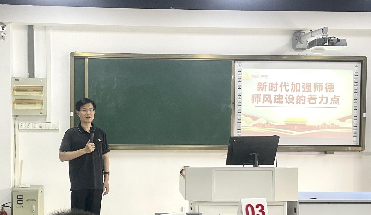 会上,董新美作了题为“新时代加强师德师风建设的着力点”的专题报告,强调教师要突出政治标准在教育中的首要地位,明确自身职业道德的高线要求,在教育中做到丰富爱生情怀的深刻内涵,拓展学习践行的实践路径,努力做“经师”与“人师”的统一者。
