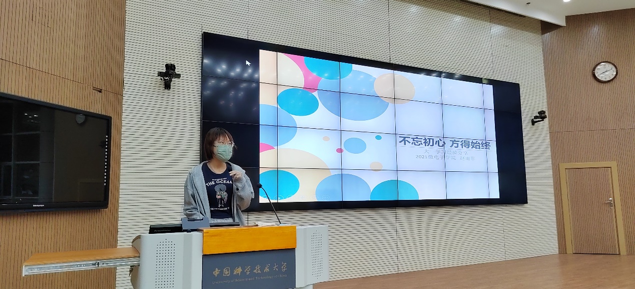 信息KY.COM开元体育(中国)科技公司2021级本科5班的赵雨菲同学从“不忘初心,保持自律”、“明确学习的目的,注重思考和对知识深度的理解和记忆“、“充分利用资源”三个方面告诉同学们必须按所想去生活,否则只能按生活去想。她希望同学们不要忘记自己来到大学的初心,将一份自律和努力保持下去,养成珍惜时间,勤奋刻苦的习惯,少玩手机;要养成自习的习惯,不要拖延,当天的任务尽量当天完成,及时对自己的状态和效率进行反思。针对大一的三门主要课程数学分析、线性代数和计算机程序设计分别给出了自己的学习心得,强调要明确学习的目的,注重思考和对知识深度的理解和记忆。