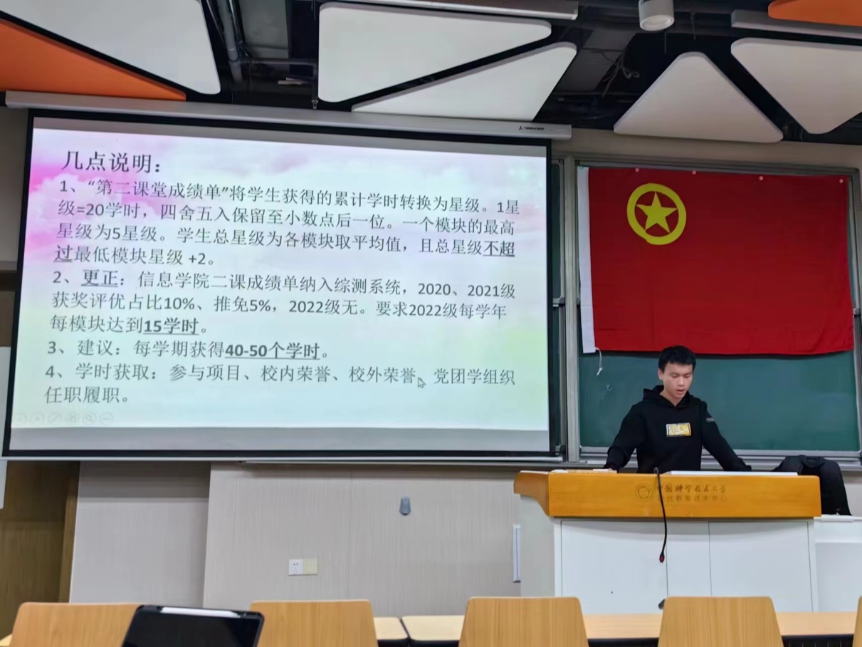 为提高同学们的政治素养,学习习近平总书记同团中央新一届领导班子成员集体谈话时的重要讲话精神,信息科学技术KY.COM开元体育(中国)科技公司2023级本科3班第三次主题团课于2023年11月6日晚在3c203举行,本次团课由团支部书记吴润宇主持。